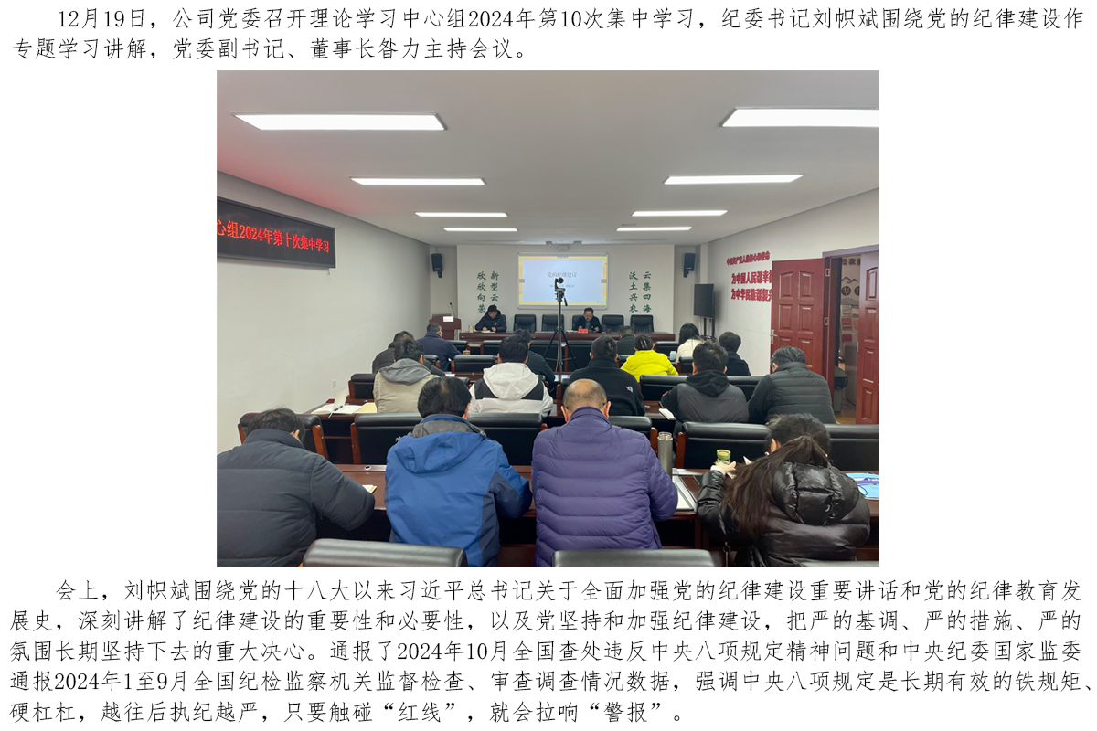 公司黨委召開理論學習中心組2024年第10次集中學習強調